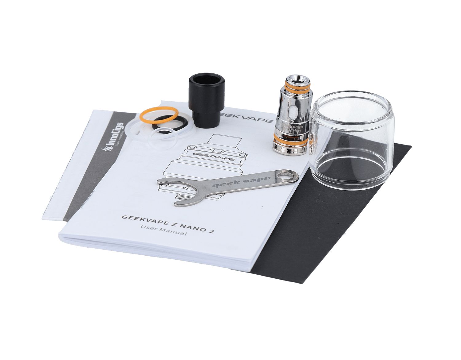 - Lieferumfang: 1x GeekVape Z Nano Tank, 1x B Series 0,2 Ohm Head (vorinstalliert), 1x B Series 0,6 Ohm Head, 1x Glastank 2ml, 1x Mundstück, 1x Coil Tool, 1x Ersatzteile, 1x Bedienungsanleitung