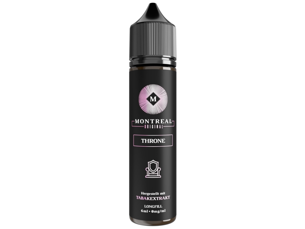 Das Montreal Original Longfill “Throne” bietet eine Basis für die individuelle Herstellung von E-Liquid. Das Produkt kombiniert ein 6 ml Konzentrat in einer 60 ml Flasche mit einer klassischen amerikanischen Tabakmischung.