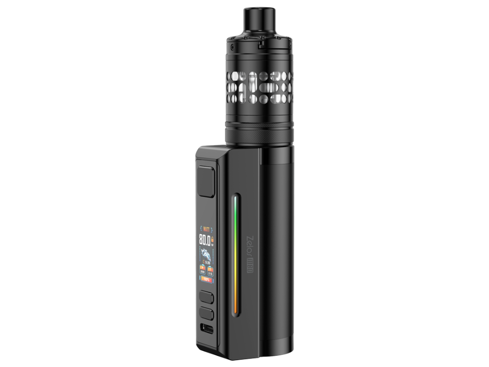 Das Aspire Zelos M80 E-Zigaretten-Set kombiniert einen leistungsstarken Akkuträger mit einem vielseitigen Clearomizer für individuell anpassbare Dampfeinstellungen. Die integrierte 2.600 mAh Akkuzelle liefert eine Ausgangsleistung von 5 bis 80 Watt und unterstützt Verdampfer mit Widerständen zwischen 0,08 und 3,5 Ohm. Ein 0,96 Zoll TFT-Farbdisplay und LED-Indikatoren bieten eine präzise Steuerung der fünf Betriebsmodi.