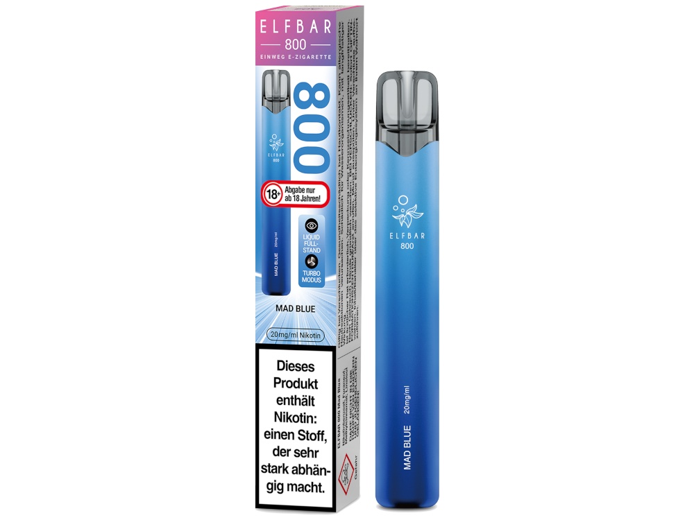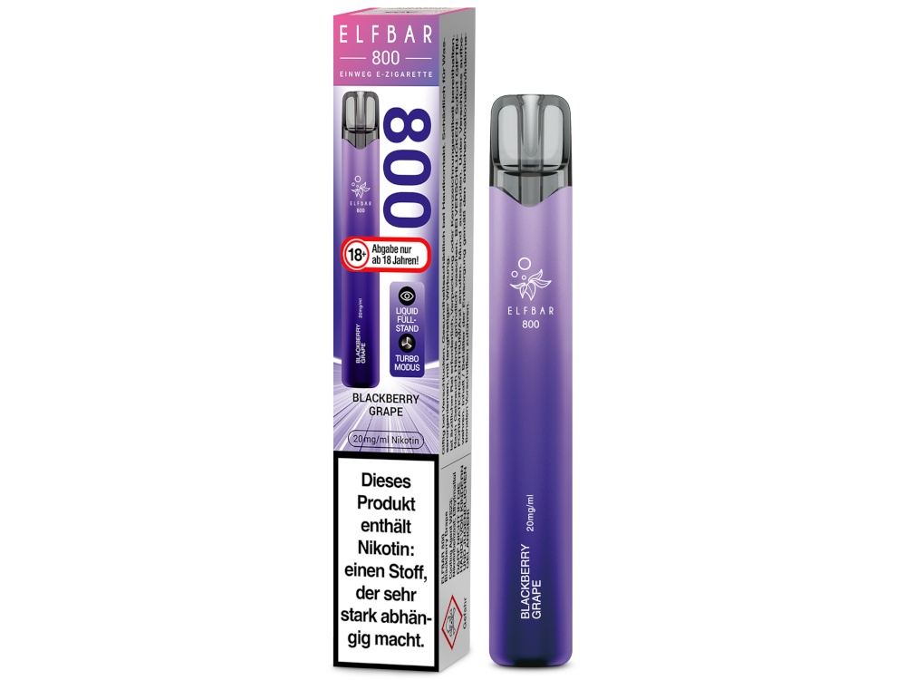 Die Elfbar 800 Einweg E-Zigarette kombiniert eine hohe Zugzahl mit einer Auswahl an Geschmacksrichtungen. Das Gerät ist für den einmaligen Gebrauch konzipiert und bietet eine vorbefüllte Kapazität.