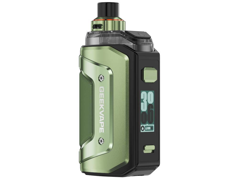 Das GEEKVAPE Aegis Hero 5 E-Zigaretten Set ist ein Pod-System, das über einen fest verbauten 2.000 mAh Akku verfügt. Das Gerät erreicht eine Ausgangsleistung von bis zu 50 Watt, wobei Betriebsparameter auf dem 0,96-Zoll TFT Display angezeigt werden; eine Tastensperre verhindert dabei ein Auslösen. Die mitgelieferte Aegis Hero Cartridge bietet ein Tankvolumen von 6,5 ml und wird über ein Top Filling-System befüllt. Eine stufenlos regulierbare Airflow-Control erlaubt die Anpassung des Zugwiderstands. Im Lieferumfang sind zwei Coils der B Series (Boost Version) für das direkte Lungendampfen (DL) enthalten: Ein 0,4 Ohm Coil ist vorinstalliert, ein 0,2 Ohm Coil liegt zusätzlich bei. Weitere Widerstände der B Series (Boost Version) Heads sind separat erhältlich. Geladen wird der Akku über den USB-C-Anschluss mit dem ebenfalls mitgelieferten Kabel.