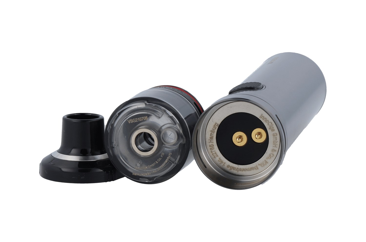 Der Pod wird über das Top-Filling-System befüllt. Dazu wird die obere Kappe des Pods abgezogen. Das Liquid kann dann direkt in den Tank eingefüllt werden, ohne den Pod oder den Verdampferkopf aus dem Gerät nehmen zu müssen. Dies minimiert die Verschmutzungsgefahr.