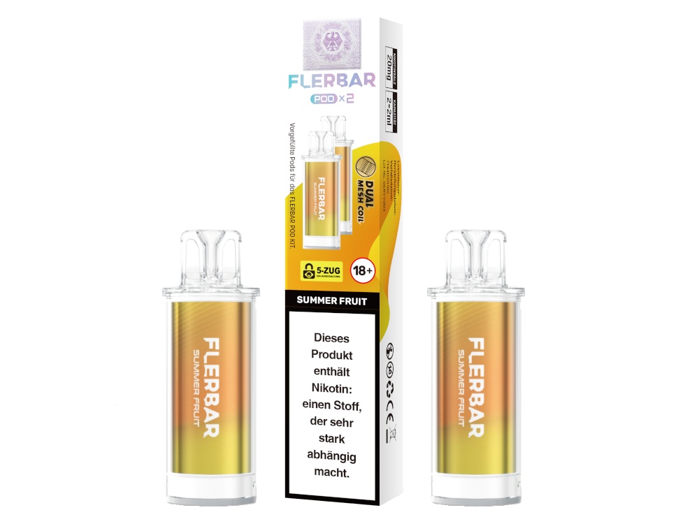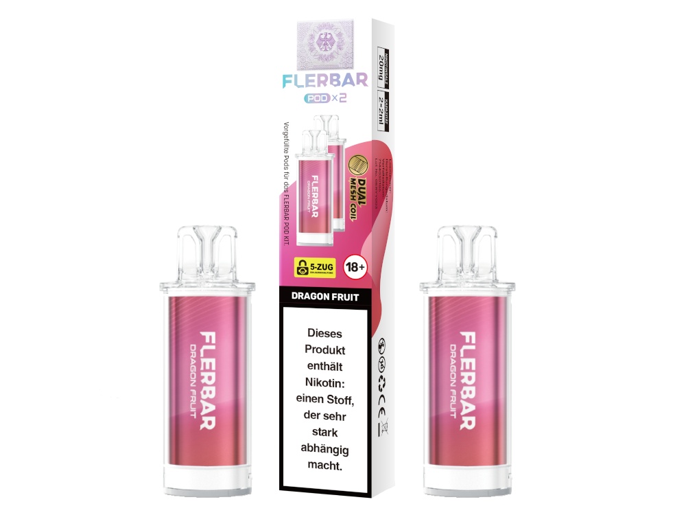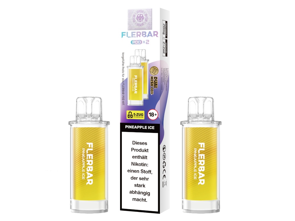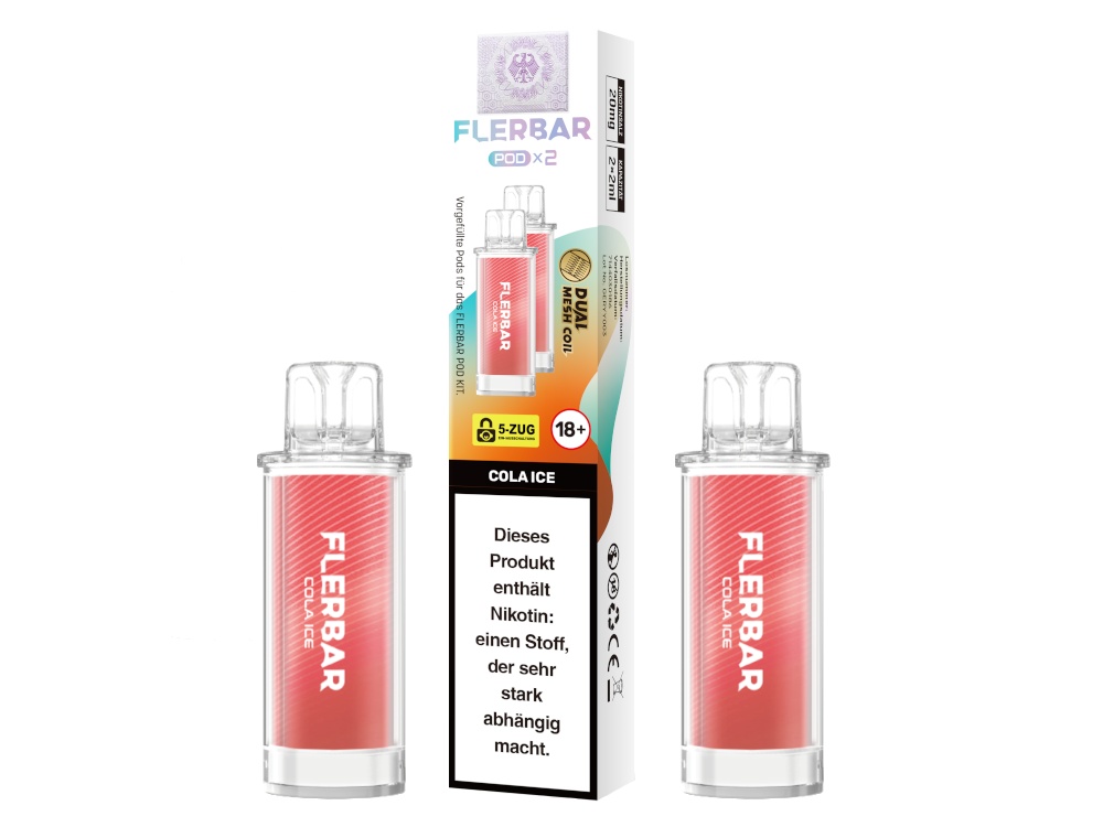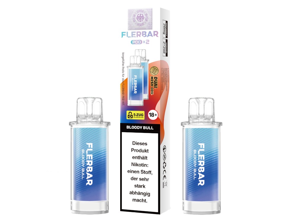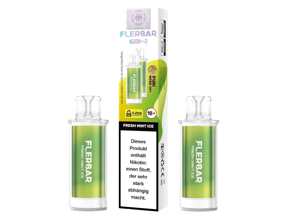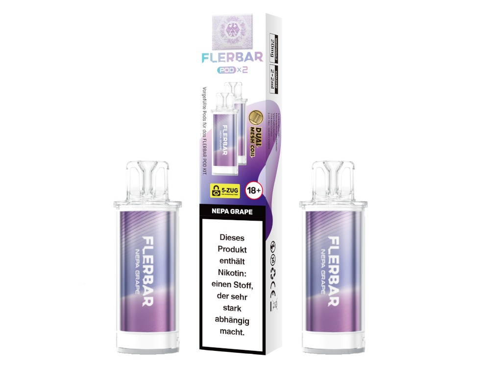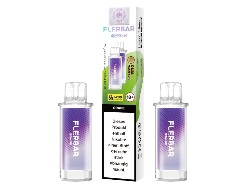 Die Flerbar PODs sind ausschließlich mit dem originalen Flerbar POD Akku kompatibel. Die Bauform und die elektrischen Kontakte sind auf dieses spezifische Gerät abgestimmt. Ein Einsatz mit anderen Akkuträgern oder Pod-Systemen ist nicht vorgesehen und könnte zu Fehlfunktionen führen.