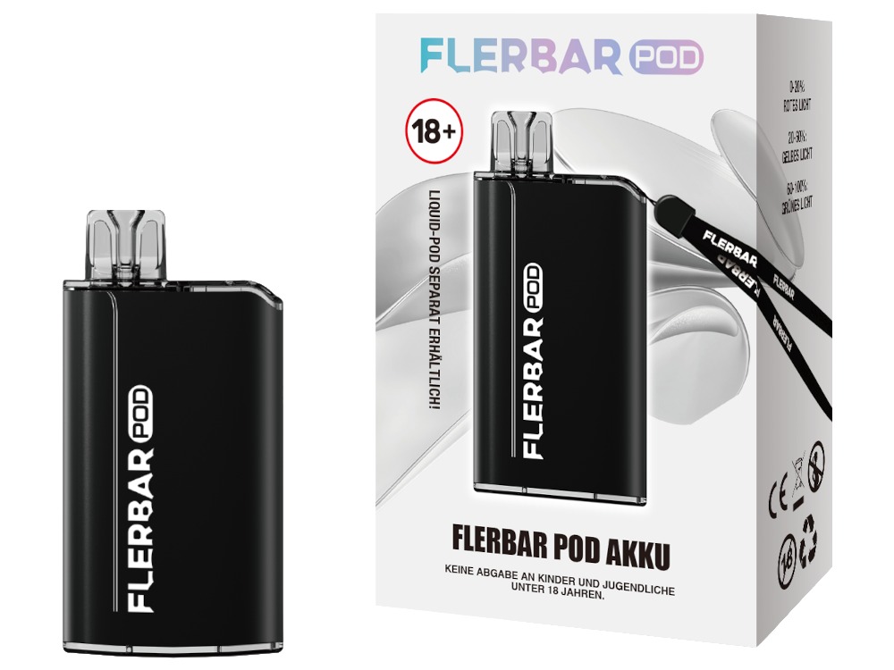 Der Flerbar POD Akku ist speziell für den Einsatz mit den vorbefüllten Flerbar PODs entwickelt. Eine Kompatibilität mit PODs anderer Hersteller oder Bauformen kann nicht gewährleistet werden und wird nicht empfohlen.