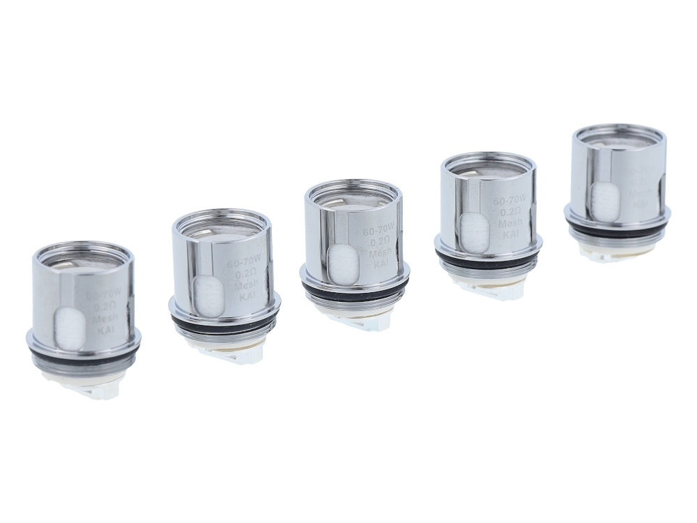 Der Aufbau mit Mesh-Wicklung bietet eine große Oberfläche für die Liquidverdampfung. Der angegebene Widerstand von 0,2 Ohm und der Leistungsbereich von 60 bis 70 Watt sind technische Parameter, die für den Betrieb relevant sind. Ein regelmäßiger Austausch der Köpfe ist ein standardmäßiger Wartungsschritt.