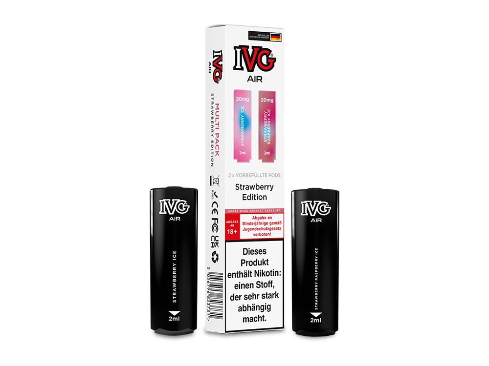 Der IVG AIR Pod Multi Flavour Edition bietet eine praktische Lösung für Dampfer, die Abwechslung schätzen. Diese vorbefüllten Cartridges sind speziell für den AIR 2in1 Akku von IVG entwickelt und ermöglichen einen schnellen Geschmackswechsel. Jede Packung enthält zwei Pods mit unterschiedlichen Geschmacksrichtungen, die für ein konstantes Dampferlebnis sorgen.