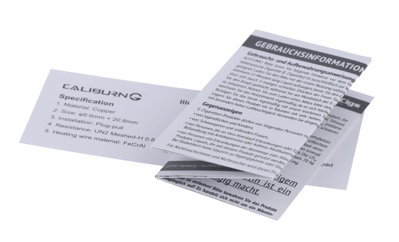- Kompatibilität: Uwell Caliburn & Ironfist L Cartridge 2,5 ml, Uwell Caliburn Explorer Pod 4 ml, Uwell Caliburn G Cartridge 2 ml, Uwell Caliburn G2 Pod 2 ml, Uwell Caliburn X Pod 3 ml